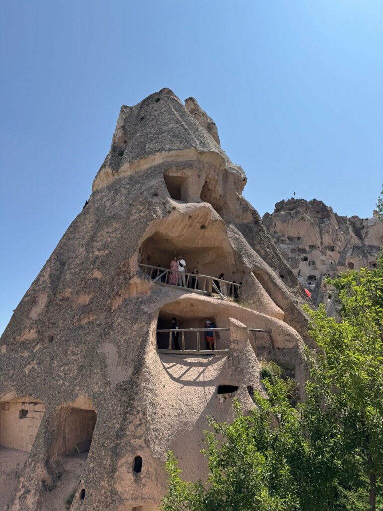 Uchisar Castle – The Highest Point in Cappadocia A short two-minute drive brings us to Uçhisar Castle, one of the most iconic landmarks in Cappadocia. Before climbing to the top, take some time to snap beautiful photos of the fortress from below.