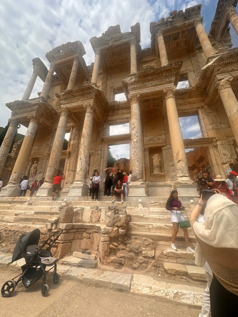 The State Agora, which once served as the city’s political and commercial center, featuring the Augustus Basilica, surrounded by a colonnade of columns. The main streets, lined with statues, fountains, and monumental temples dedicated to Emperors Domitian, Trajan, and Hadrian. The Celsus Library, the third-largest library of the ancient world, housed over 12,000 scrolls and remains one of the most remarkable Roman structures in Turkey.